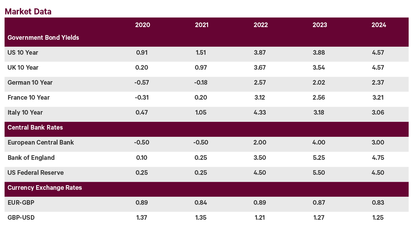 Figure 2: However, 10-year Gilts yields remain elevated (vs. US, German, French & Italian bond yields)