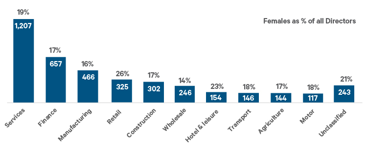 Figure 2: Females directors of Irish companies (value > €1 million < €100 million)